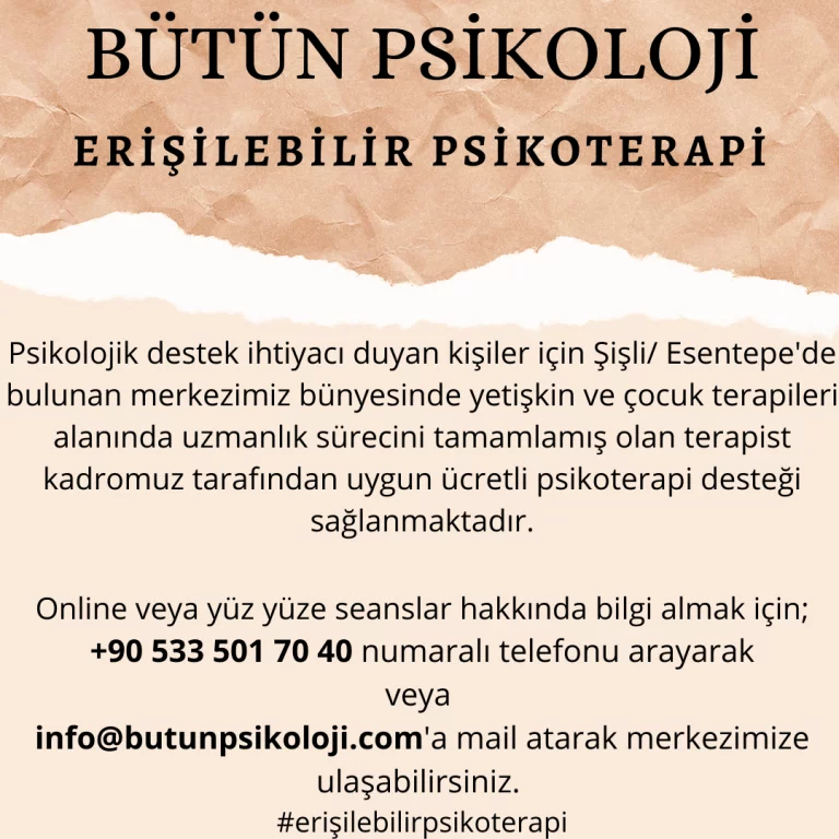 Başvuru için bizlere basvuru@butunpsikoloji.com adresi üzerinden ulaşabilirsiniz.